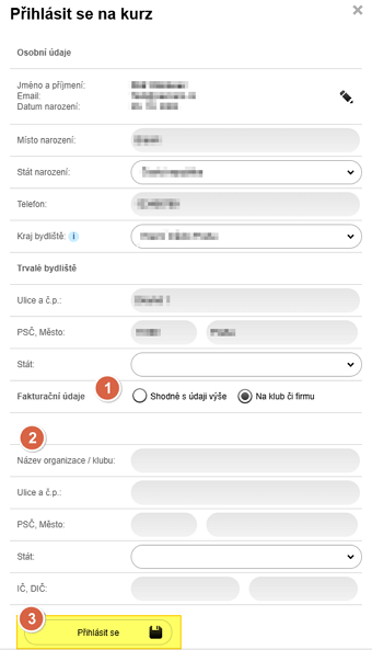 - potvrďte přihlášení do kurzu ❸.