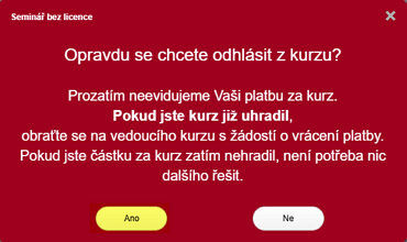 Odhlaste se z kurzu stisknutím tlačítka Odhlásit z kurzu.